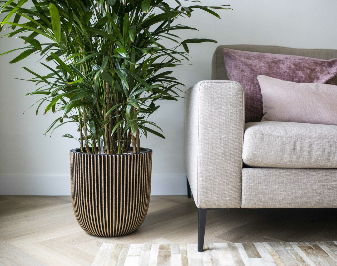 Dieser Blumentopf vereint edle Ästhetik mit modernster Funktionalität. Die orangefarbene Innenseite, eine Hommage an die niederländische Fertigungstradition, ist mehr als nur ein ästhetisches Detail: Sie ist eine innovative Isolierschicht, die die Wurzeln vor Winterfrost und Sommerhitze schützt und so die Pflanzengesundheit zu jeder Jahreszeit gewährleistet. Diese Technologie macht den Topf bruchsicher, langlebig und für jede Umgebung geeignet, sowohl drinnen als auch draußen.
