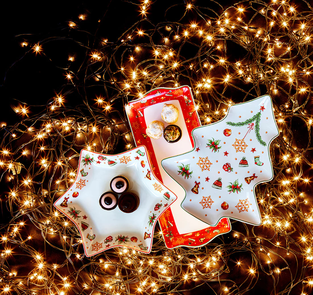 Villa Altachiara Joy Rechteckiges Weihnachtstablett aus Porzellan