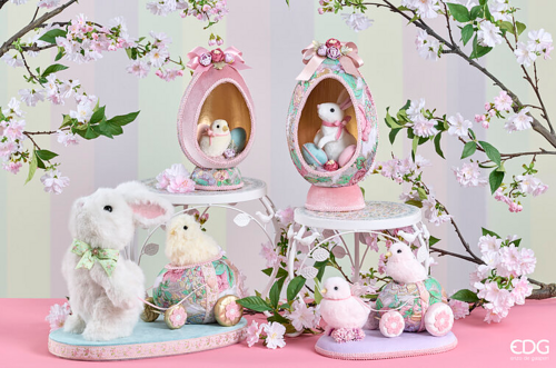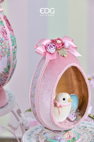 Il Decoro Uovo Pulcino EDG è perfetto come centrotavola, soprammobile o elemento decorativo per vetrine e composizioni stagionali, donando un’atmosfera primaverile e raffinata.