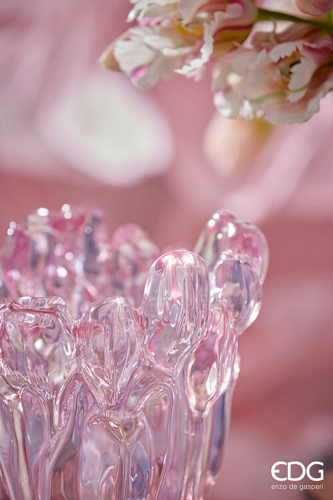 EDG Enzo De Gasperi Tulip Vase H30 D22 cm in Pink Glass is an elegant decorative glass vase, perfect for enhancing fresh or artificial floral arrangements with style and refinement. Designed by the prestigious Italian brand EDG Enzo De Gasperi, this vase stands out for its tulip-shaped design, sinuous lines, and transparent green glass finish, which adds brightness and a pop of color to any space.