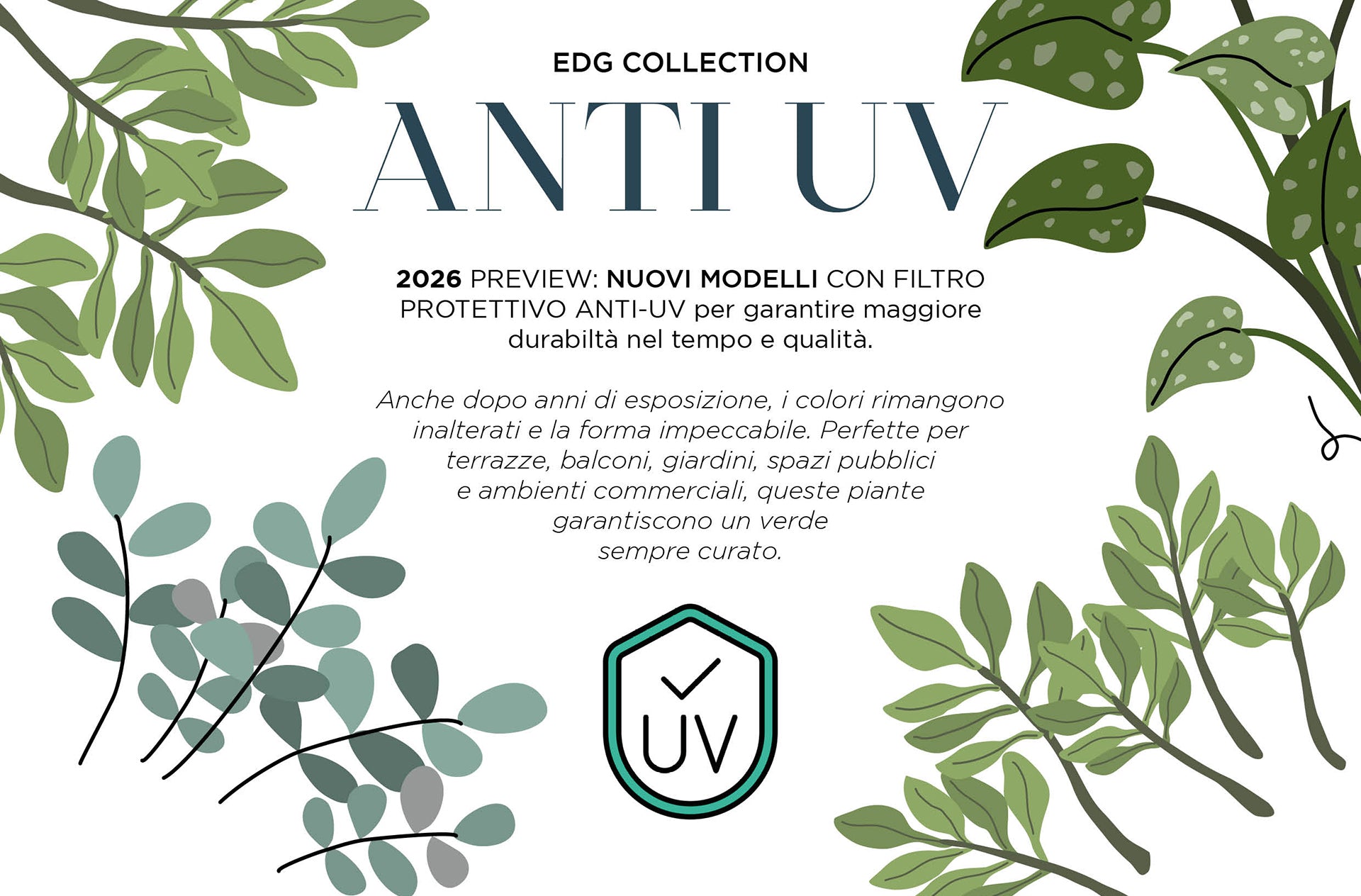 Prodotta da EDG – Enzo De Gasperi, marchio sinonimo di qualità e attenzione ai dettagli, la Yucca Anti-UV è realizzata con materiali resistenti ai raggi solari, che garantiscono una lunga durata nel tempo senza scolorimenti. Il trattamento anti-UV la rende perfetta per terrazzi, balconi, verande, ingressi e aree outdoor, oltre che per uffici e ambienti interni luminosi.