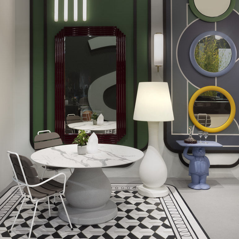 Lampada da terra Slide Ottocento, un'opera di design contemporaneo che reinterpreta lo stile classico. Con un'altezza di 170 cm, questa lampada grigio elefante diventa un elemento architettonico dello spazio, perfetta per illuminare ambienti moderni con eleganza sofisticata.