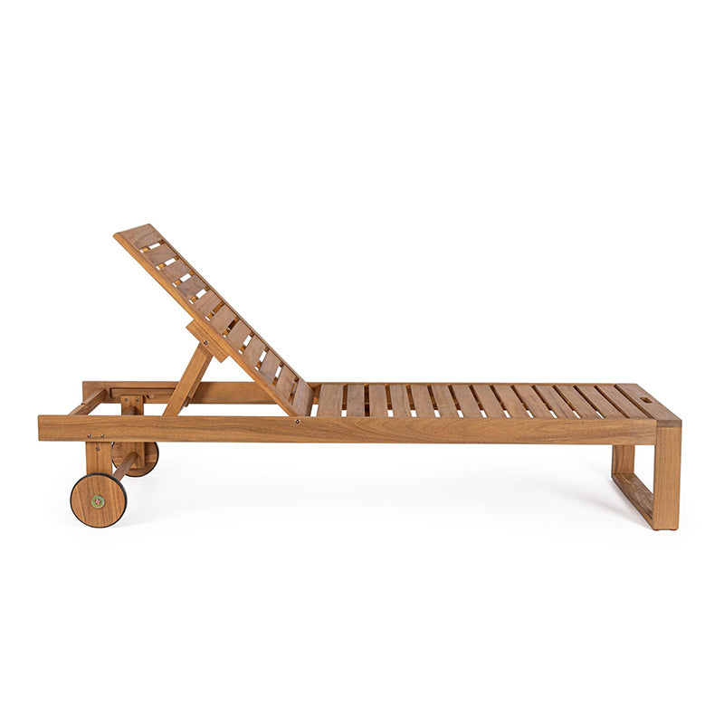 I due lettini Danubio coordinati sono anch’essi realizzati in legno di acacia FSC 100% con finitura a olio effetto teak, perfettamente abbinati al salotto per creare un ambiente outdoor uniforme e raffinato. Sono dotati di schienale reclinabile in 4 posizioni per garantire il massimo comfort durante il relax al sole. Le ruote in legno e gomma facilitano lo spostamento, mentre la viteria in acciaio galvanizzato assicura robustezza e durata. Le gambe sono da assemblare. Ogni lettino misura 63 cm di larghezza, 191 cm di lunghezza e 90 cm di altezza, con altezza della seduta pari a 33 cm.