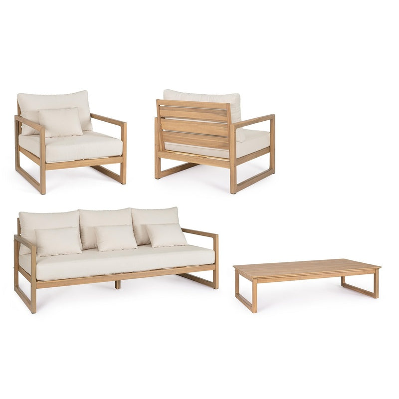 Il Set Adrian Andrea Bizzotto rappresenta una soluzione completa composta da due poltrone, un divano tre posti e tavolino coordinato, ideale per chi cerca un salotto da giardino in legno massello resistente, sostenibile e dal design contemporaneo. Perfetto per creare un’area relax elegante e funzionale, valorizza qualsiasi spazio outdoor con la qualità e lo stile firmati Andrea Bizzotto.