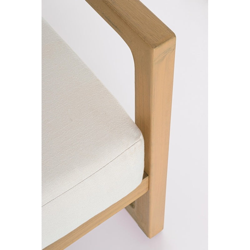 Le sedute sono completate da cuscini sfoderabili in tessuto idrorepellente Spunpoly 230 gr/m², progettati per offrire comfort e praticità. Il rivestimento idrorepellente li rende più adatti all’utilizzo outdoor, mentre la possibilità di sfoderarli facilita la manutenzione stagionale.