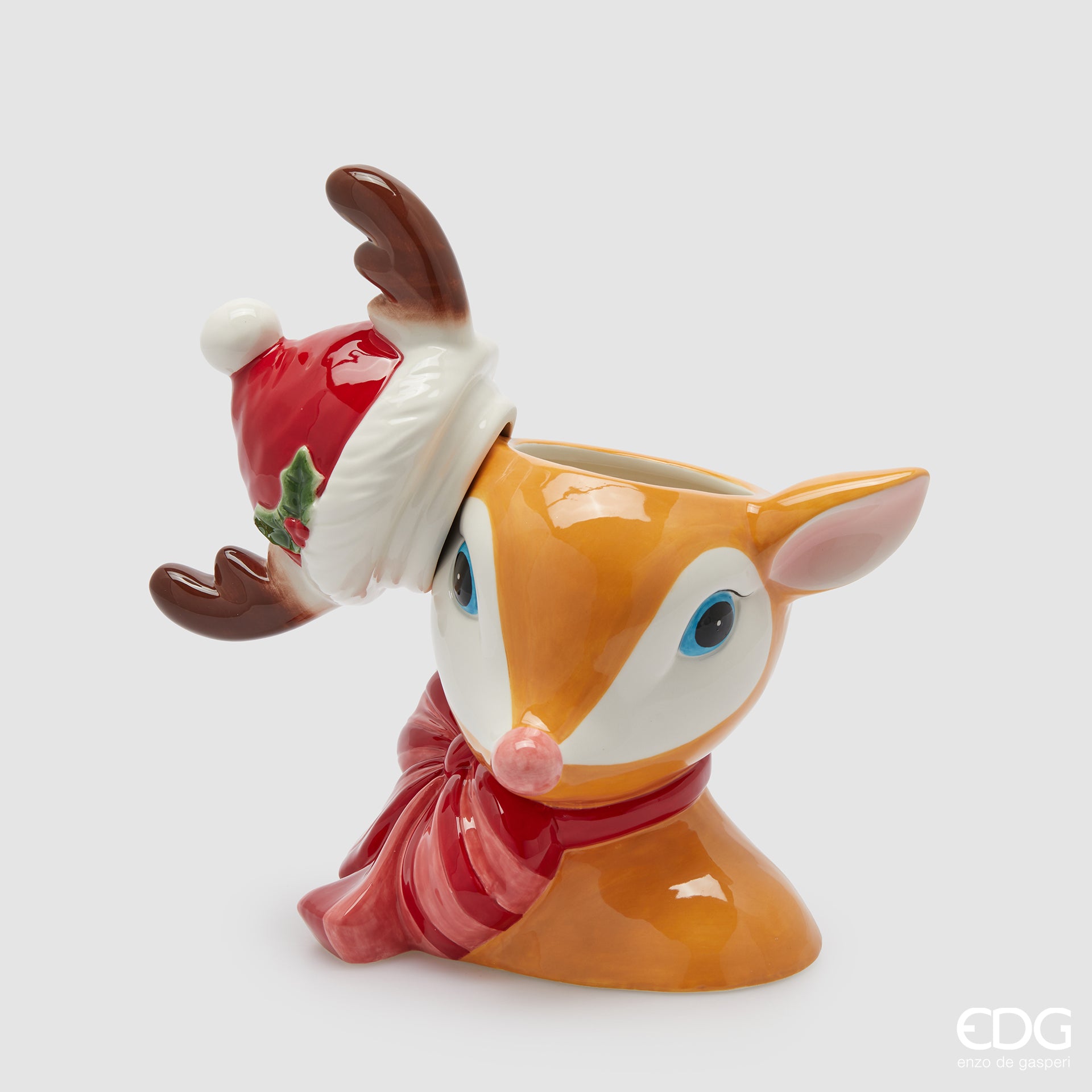 Bring the magic of Christmas into your home with the Reindeer Christmas Container H28 by EDG Enzo De Gasperi. This elegant, 28 cm tall decorative container combines functionality and festive spirit, perfect for storing treats or small gifts. Its refined design adds a touch of warmth and originality to any space, making it ideal as a centerpiece or a special gift. Make your Christmas unique with this container that combines style and practicality.