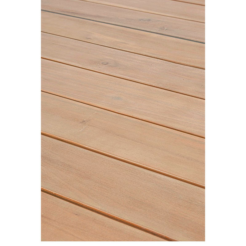 Il piano con doghe in alluminio effetto legno unisce l’estetica calda e naturale del legno alla praticità dell’alluminio, assicurando facilità di manutenzione e maggiore resistenza rispetto ai materiali tradizionali. Il meccanismo allungabile consente di estendere il tavolo da 160 cm fino a 240 cm di lunghezza, offrendo massima versatilità per ospitare comodamente più persone durante pranzi e cene all’aperto.