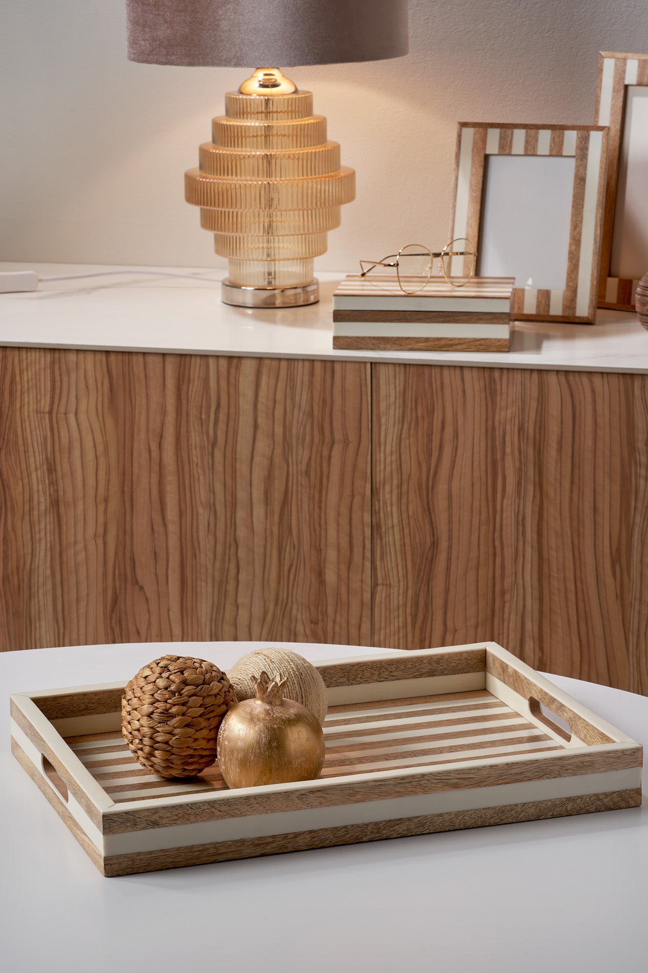 The Galbiati Ricordami tray, measuring 45x30x5 cm, is the perfect choice for those seeking a practical yet elegant accessory. Crafted from durable, high-quality wood, it combines classic style with functional design, making it ideal for serving breakfast, aperitifs, or afternoon tea with a touch of sophistication.