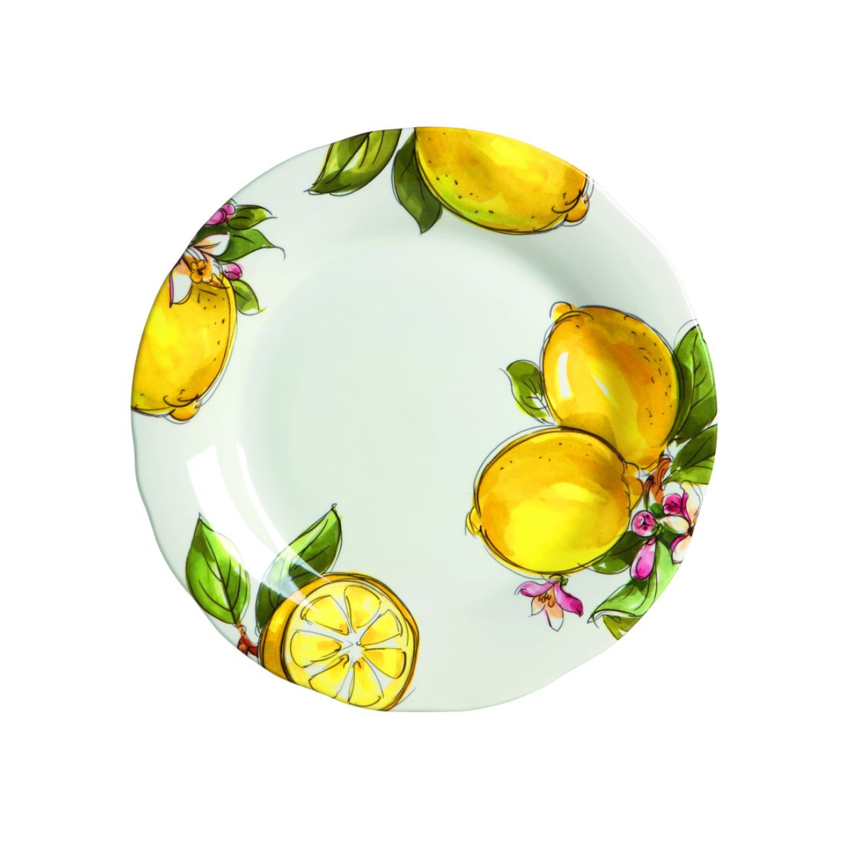 The Lemon round tray by Love Tiffani, with a diameter of 39 cm, is perfect for giving the table a touch of Mediterranean energy. Made of decorated ceramic, it features a lively pattern of lemons and green leaves, on a light background, which recalls the beauty and sunshine of the Italian coast.