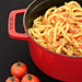 Thanks to the lid equipped with small hemispheres, the Staub cast iron cocotte generates a return flow of water, with a rain effect (see photo) up to 9 times higher than a traditional saucepan.