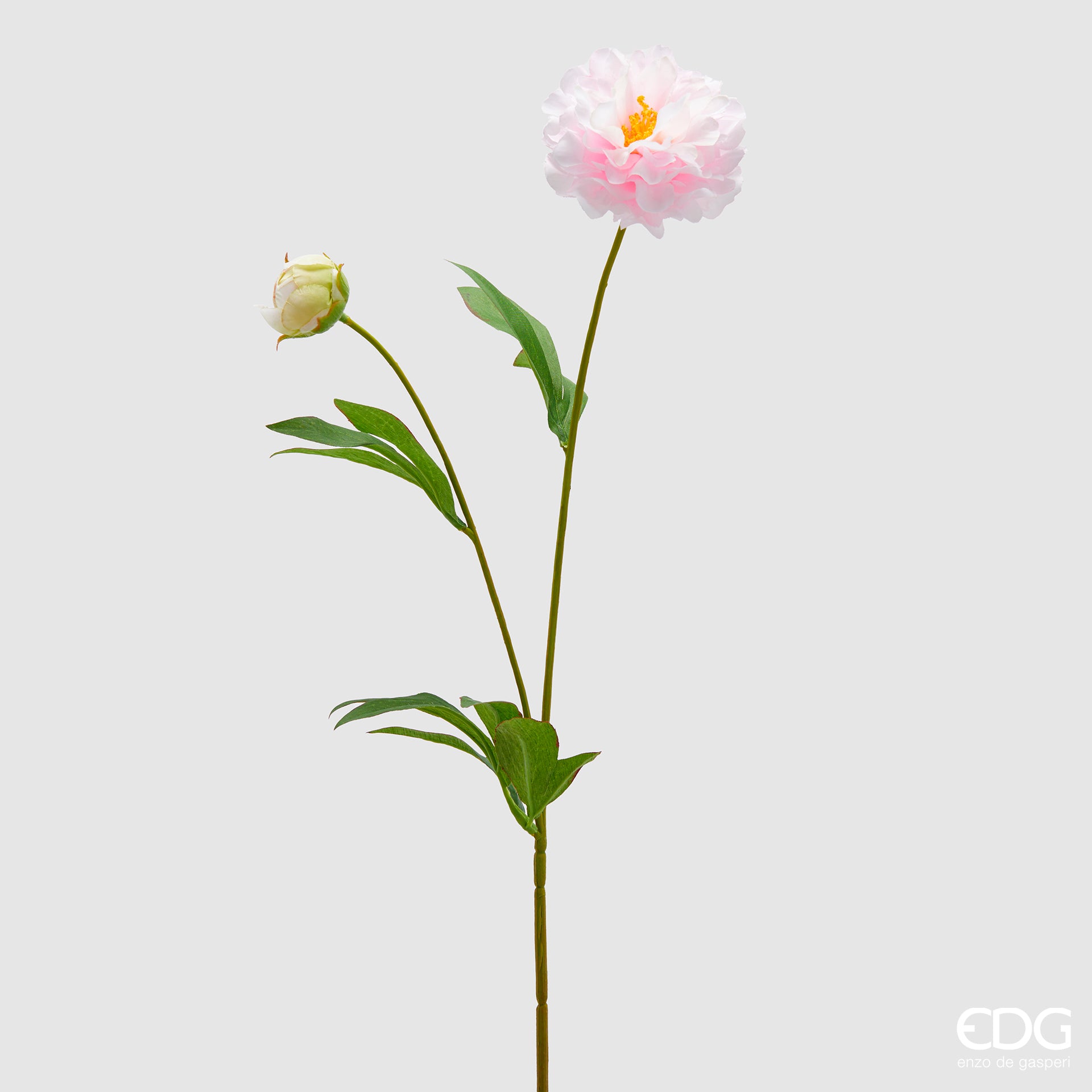 The artificial flower Peony branch with leaves and bud by EDG Enzo De Gasperi is the perfect choice for those who want to decorate with elegance and naturalness. 65 cm tall, this PVC branch reproduces with great realism the beauty of the peony, one of the most iconic and decorative flowers.