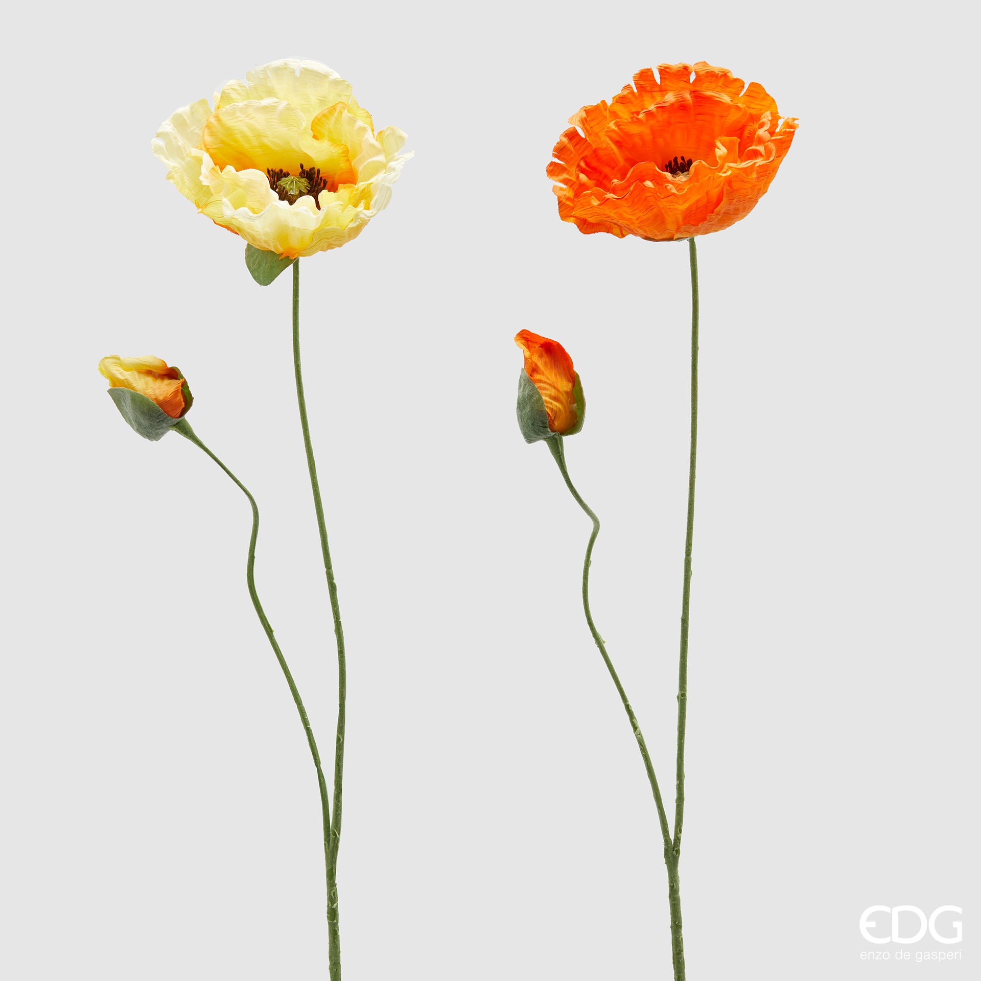 Add a touch of elegance and refinement to your spaces with the Set of 2 Poppy Branches with Bud H80 cm by Enzo De Gasperi. Made with high quality materials, these artificial branches faithfully reproduce the delicacy and natural colors of the poppy, giving a realistic and sophisticated effect.