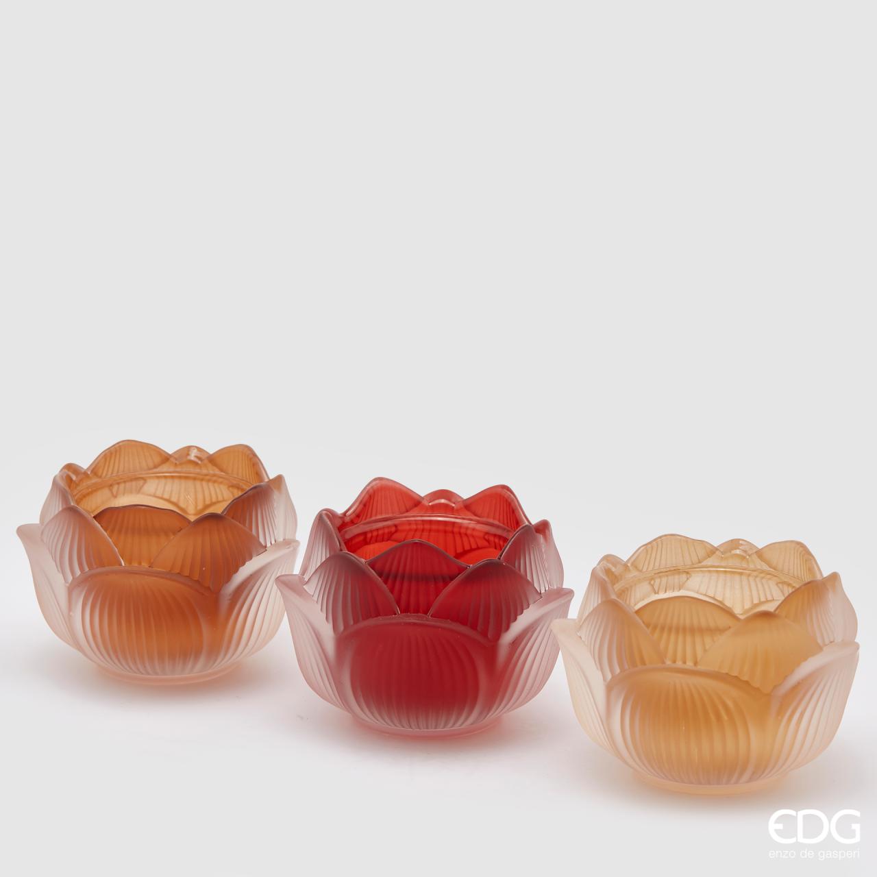 EDG Enzo De Gasperi Set of 3 Lotus Flower Candle Holders D10.5 Multicolor Satin