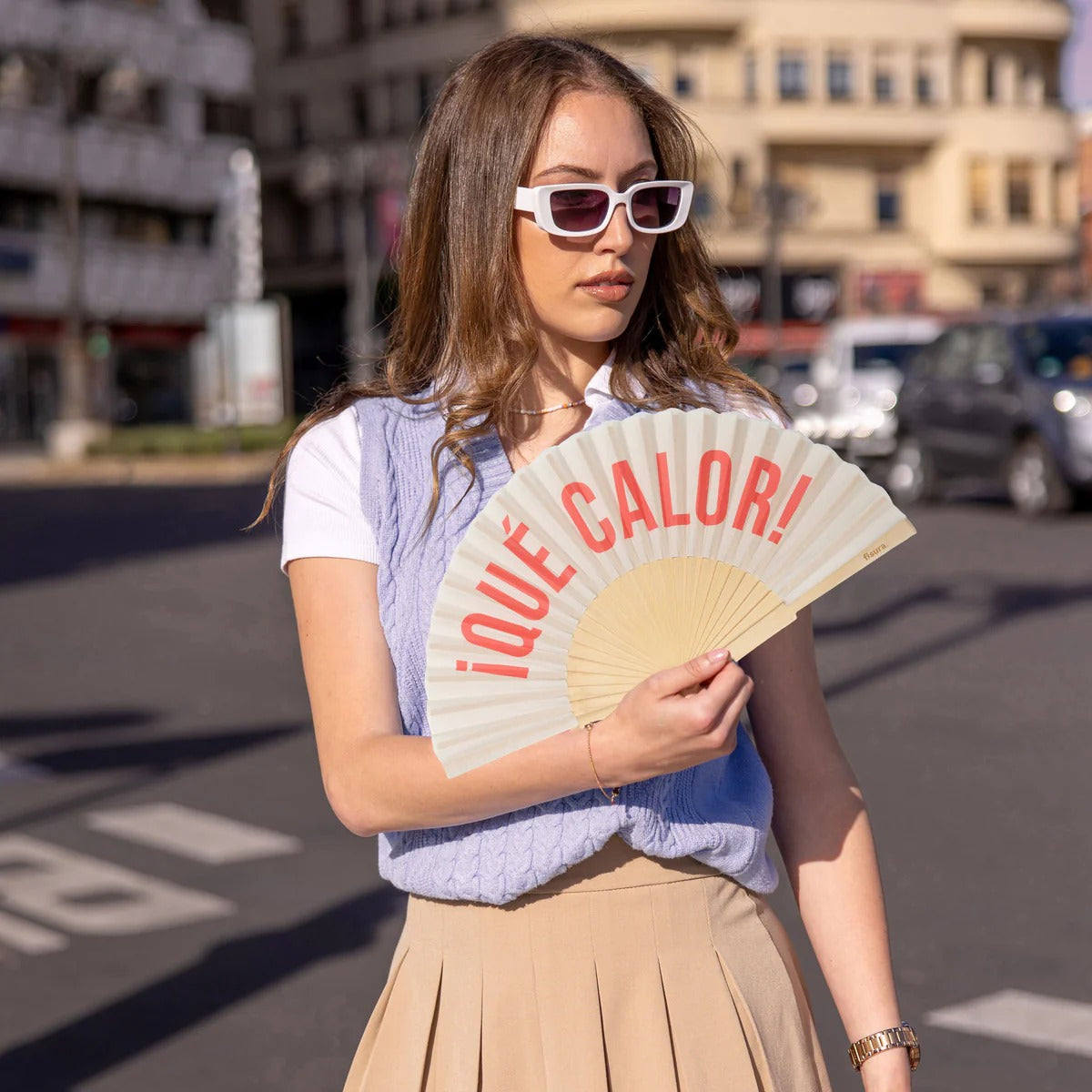 Lightweight, foldable, and convenient to carry in your bag or backpack, it's ideal for concerts, outdoor events, vacations, or simply to cool off in style. The boldly printed phrase "QUE CALOR" also makes it a fun and original summer gift idea.