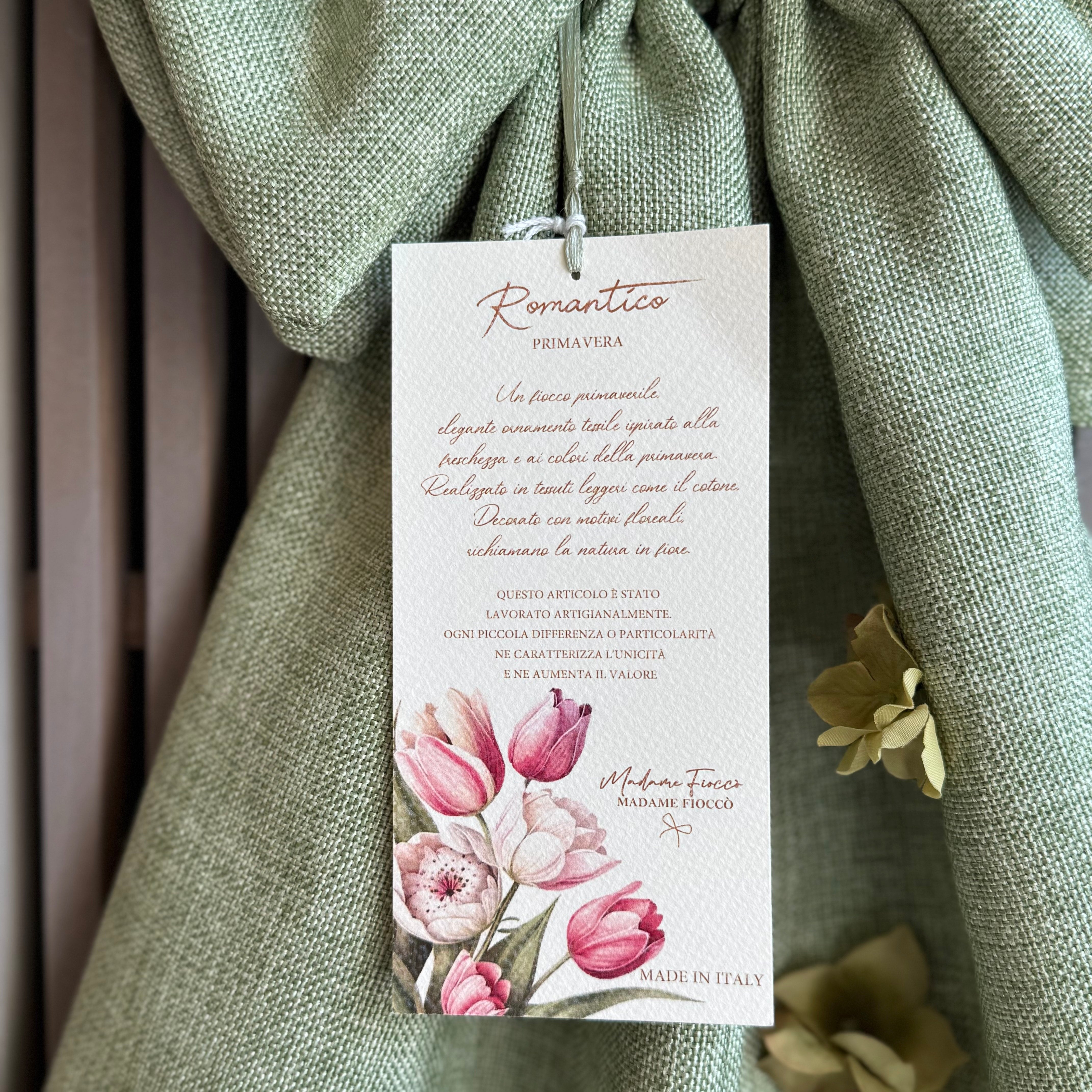The Madame Fiocco door bow is a handcrafted product that stands out for its quality and attention to detail. Its hand-made in Italy guarantees a unique attention to detail, making it a perfect decorative accessory for those seeking elegance and originality.
