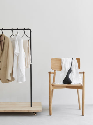 You don't need an ironing board to steam iron: simply hang your clothes on a hanger, gently press the Cirrus 2 portable steam iron onto the fabric and start ironing.