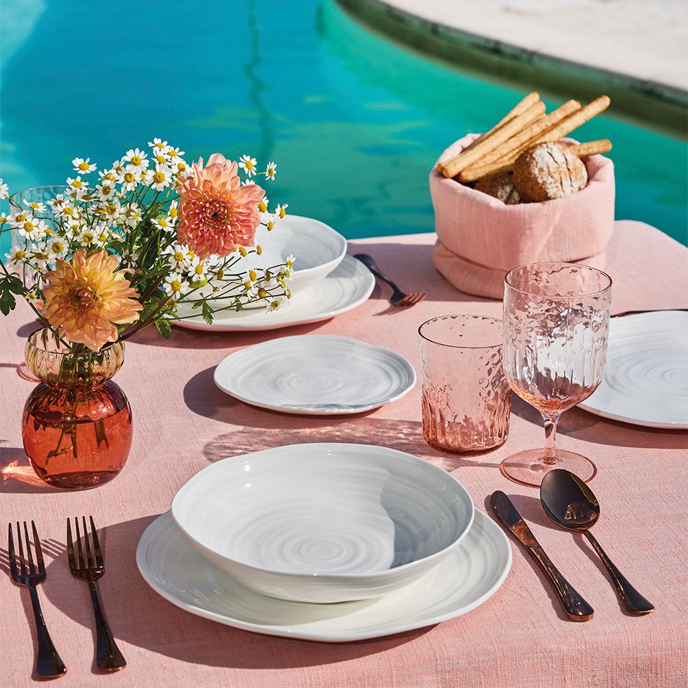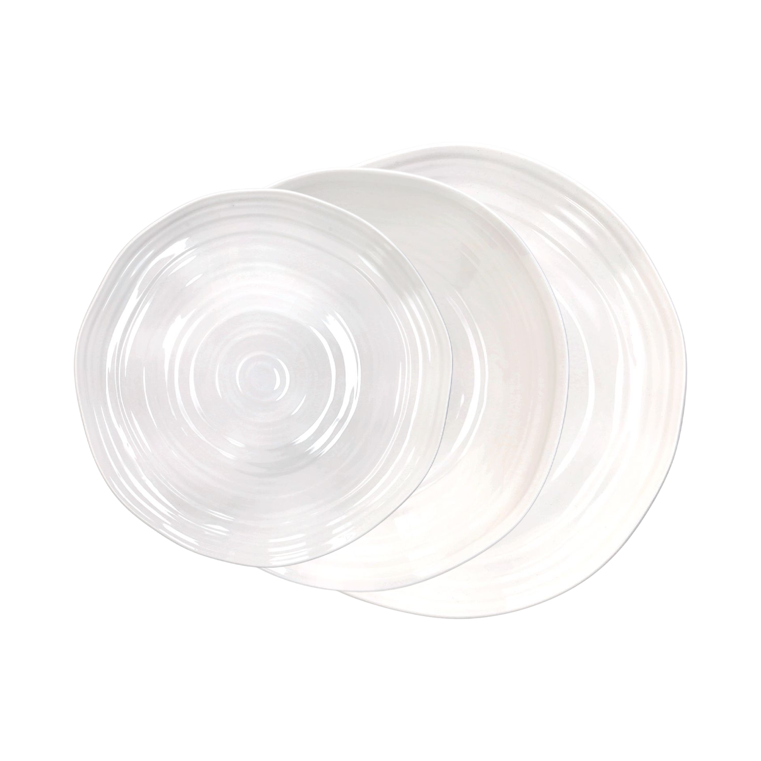 Perfect for 6 people, the service includes: 6 flat plates d27cm, 6 soup plates d22cm and 6 dessert plates d18cm.