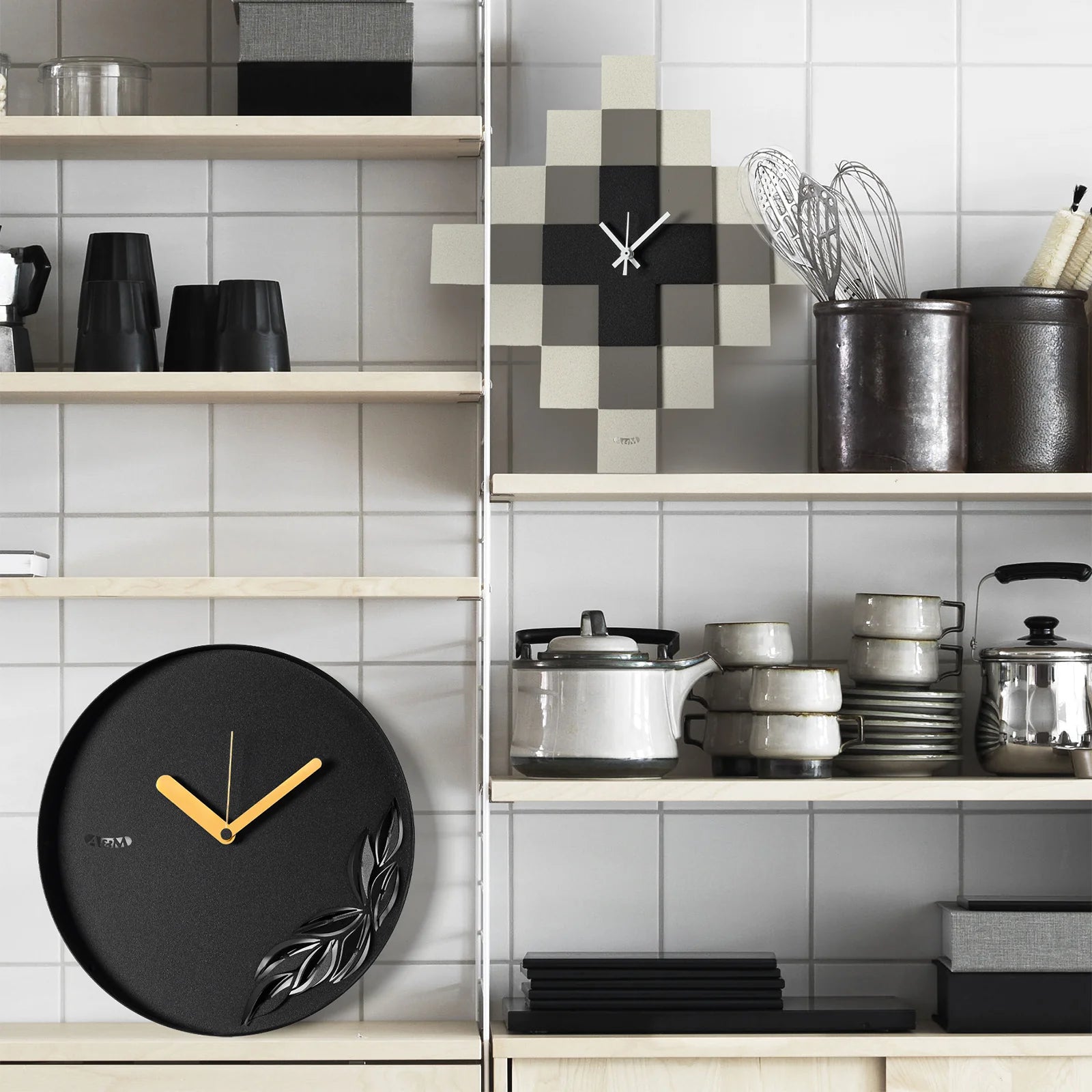 Realizzato in metallo verniciato a polveri epossidiche, l’orologio si distingue per la lavorazione laser di alta precisione che definisce i contorni dei singoli elementi, assemblati in un gioco armonico di pieni e vuoti. Ogni dettaglio riflette l’attenzione al design e alla qualità dei materiali, tratti distintivi del marchio Arti & Mestieri.