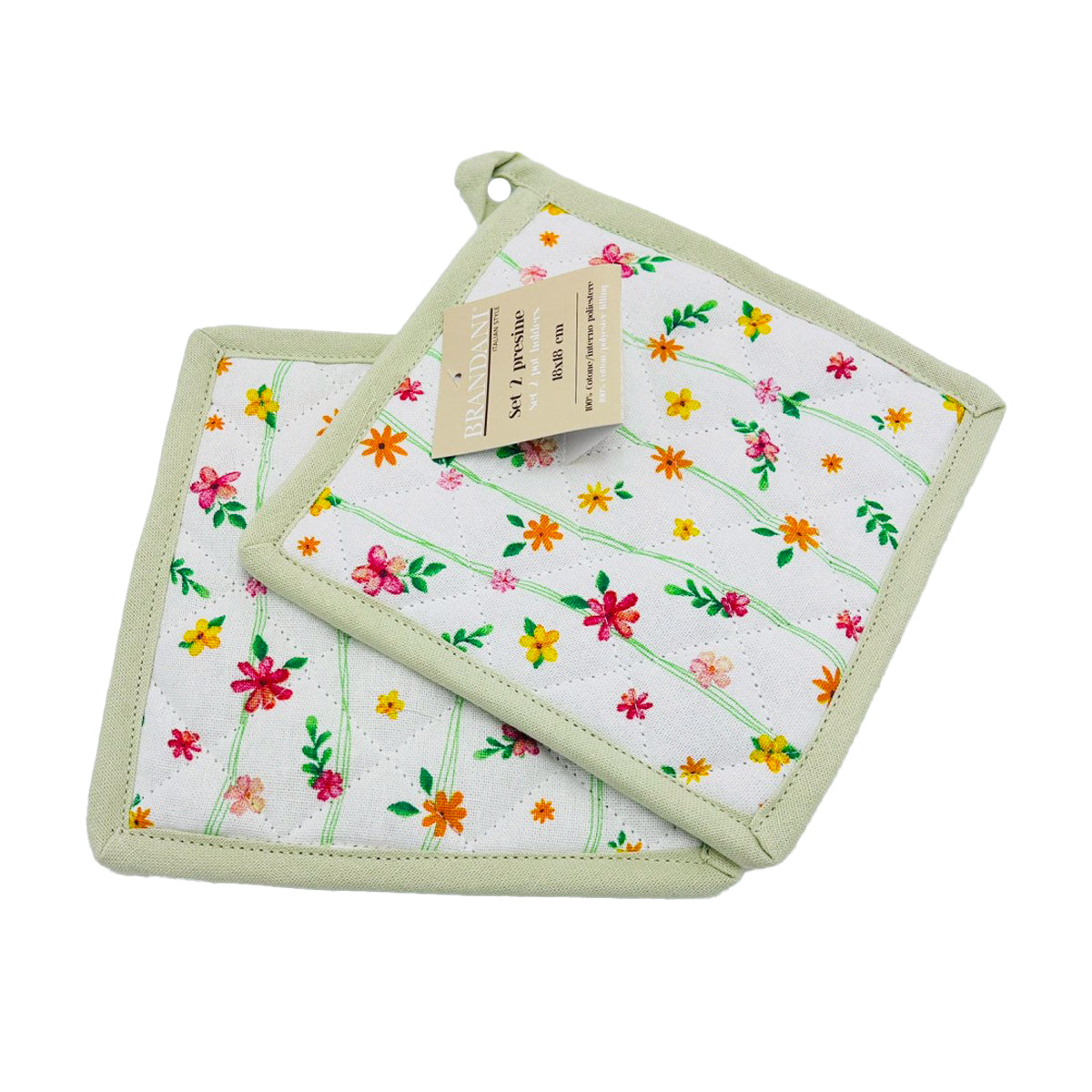 Il design floreale delicato dona un tocco di colore e freschezza alla cucina, rendendo queste presine non solo funzionali ma anche decorative. Perfette per l’uso quotidiano o come idea regalo utile e originale.