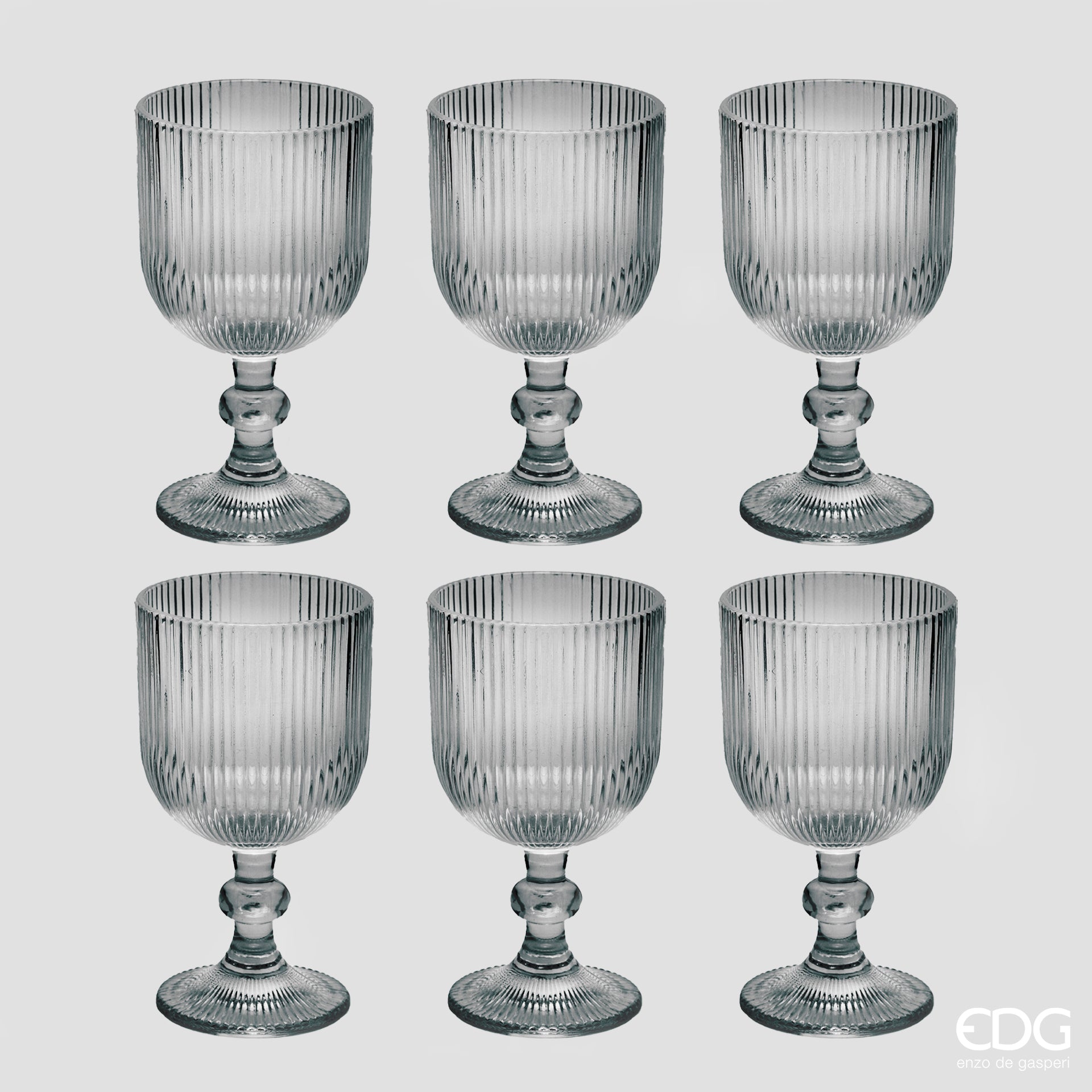 EDG Enzo De Gasperi Offerta Set 6 Calici Acqua Righe H14 D8 cm Grigio Fumè