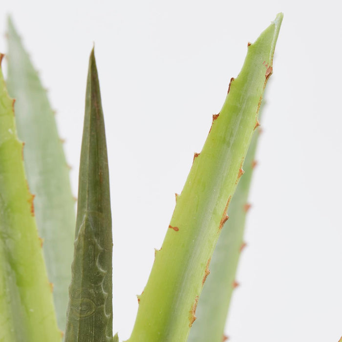 La pianta Aloe Chic presenta foglie lunghe e affusolate, di un verde intenso, con punte affilate e texture realistiche. Questa riproduzione accurata cattura l'aspetto e la bellezza dell'aloe vera, consentendoti di godere dei suoi vantaggi senza la necessità di cure complesse o di condizioni specifiche di crescita.