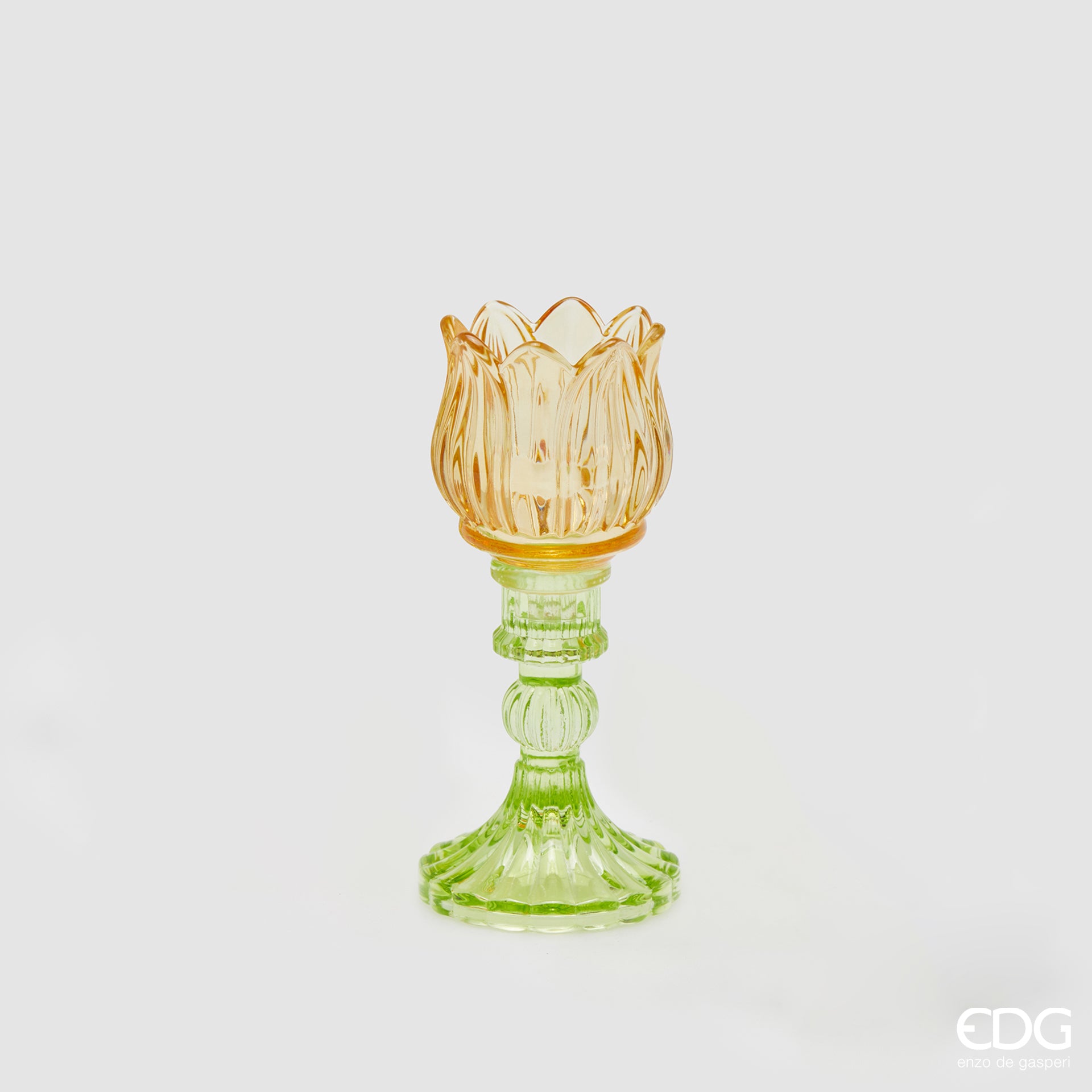 EDG Enzo De Gasperi Portacandela Tulipano Spring H17,5 cm in Vetro Ambra
