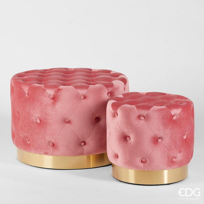 EDG Enzo De Gasperi Set 2 Pouf in Velluto Rosa H45D65 H40D45