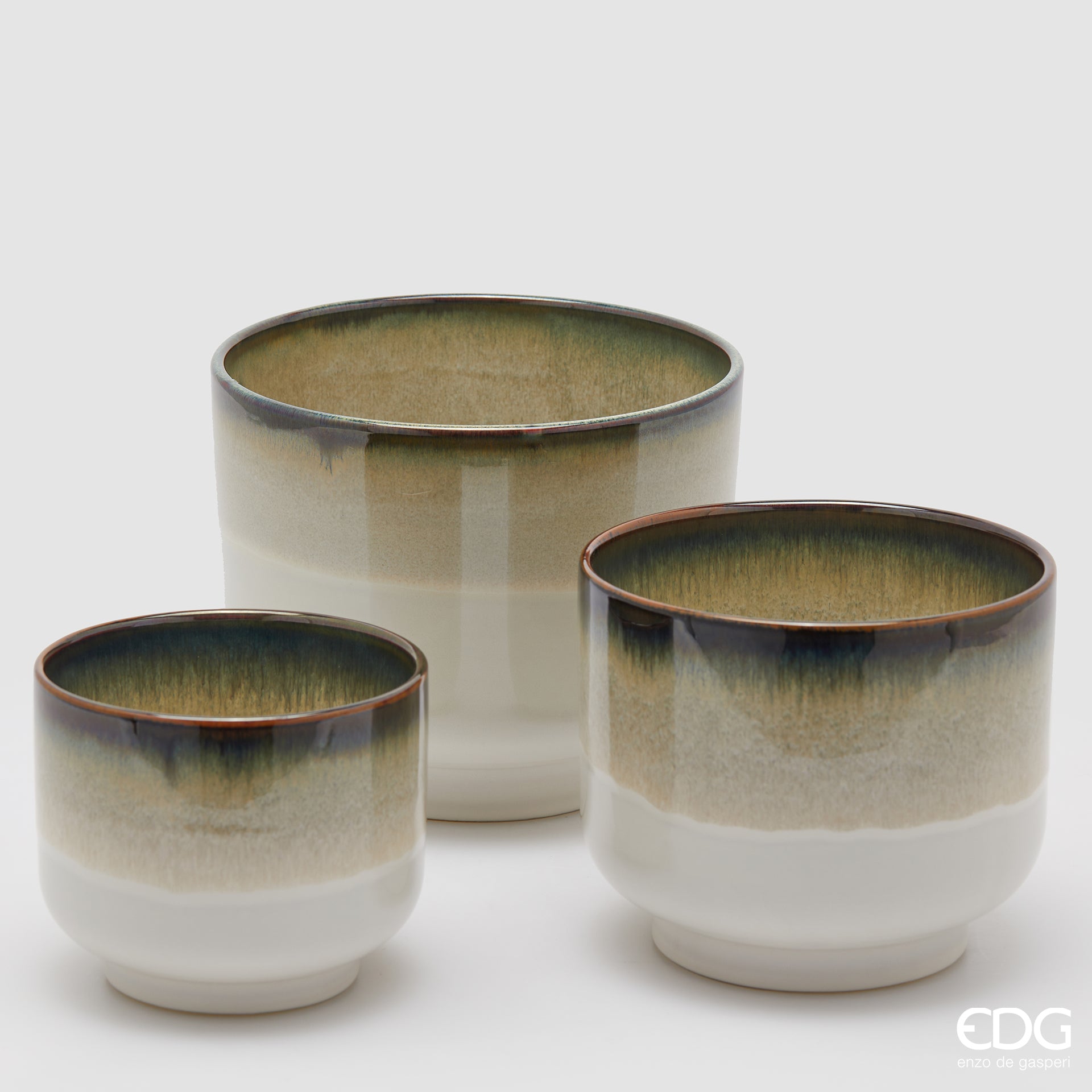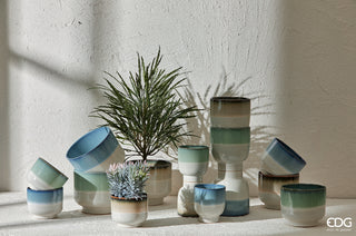 EDG Enzo De Gasperi Set 3 Vasi Cachepot Nuance con Piede in Ceramica