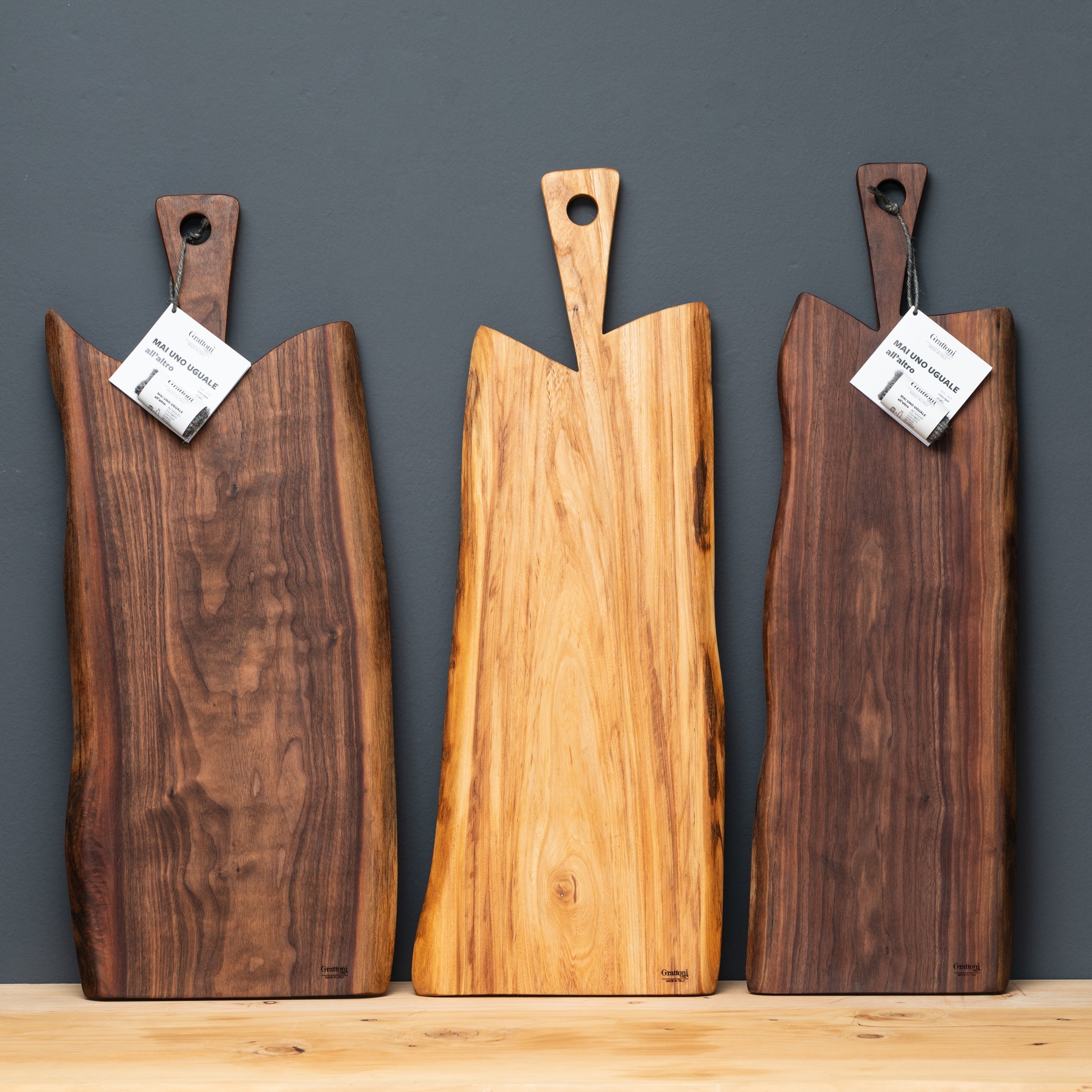 Questo è il principio alla base del tagliere artigianale Bree L in legno di noce firmato Grattoni 1892.