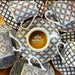 Realizzate in Porcellana bianca con 3 differenti texture in oro e nero, linea Marrakech.