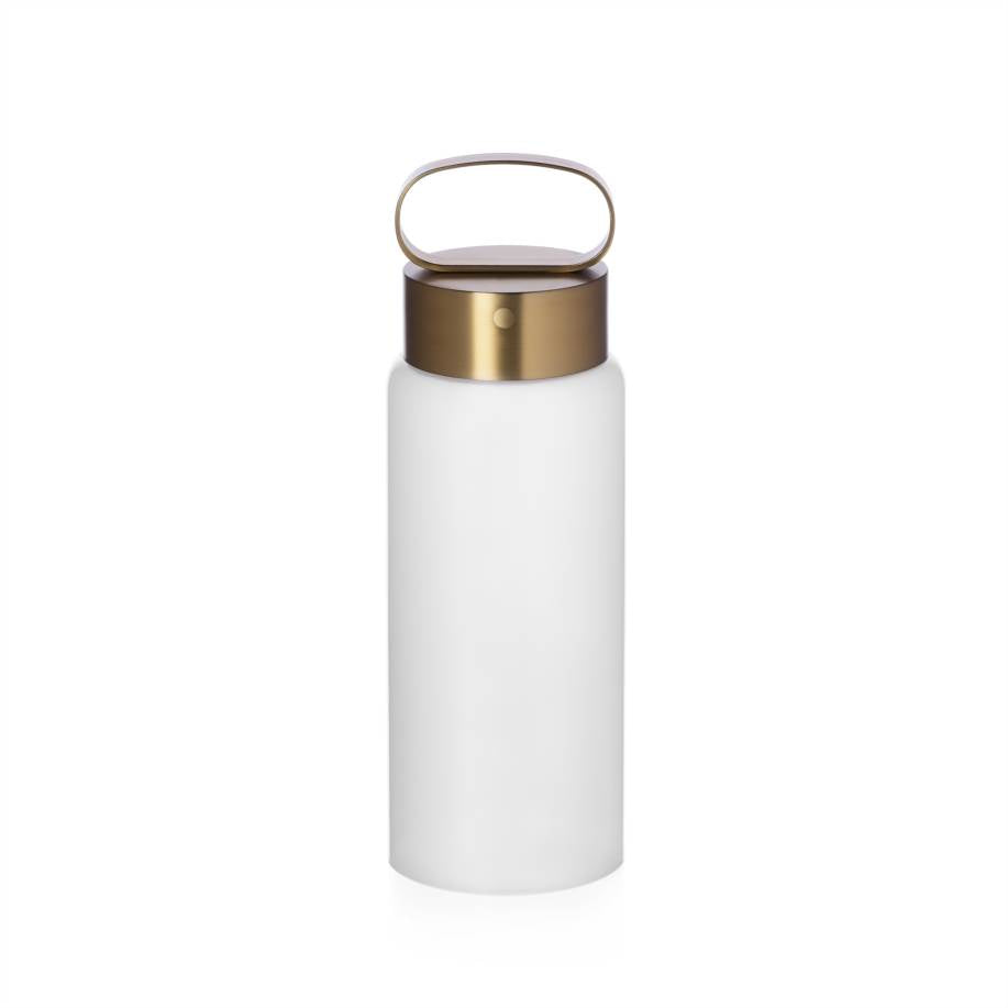 - Materiali di qualità: vetro soffiato bianco satinato e manico in alluminio con finitura in ottone.