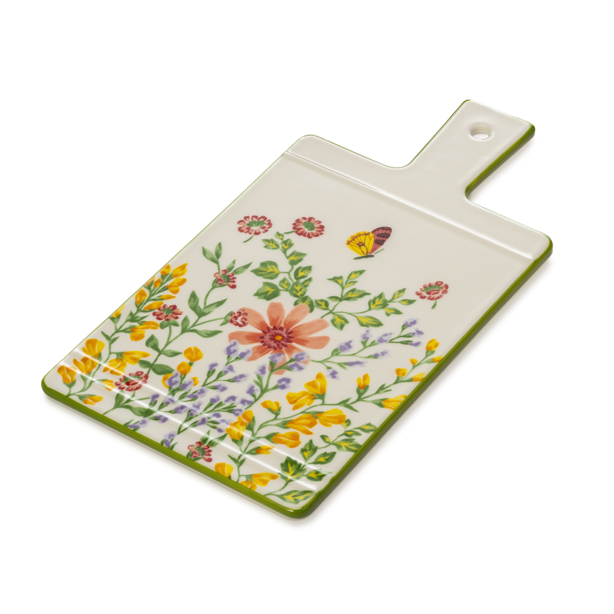 Realizzato in materiali di alta qualità, garantisce una lunga durata e un'elevata resistenza ai graffi e all'umidità. Perfetto per tagliare, affettare e servire con stile, il suo design floreale elegante aggiunge un tocco di classe alla tua cucina.