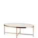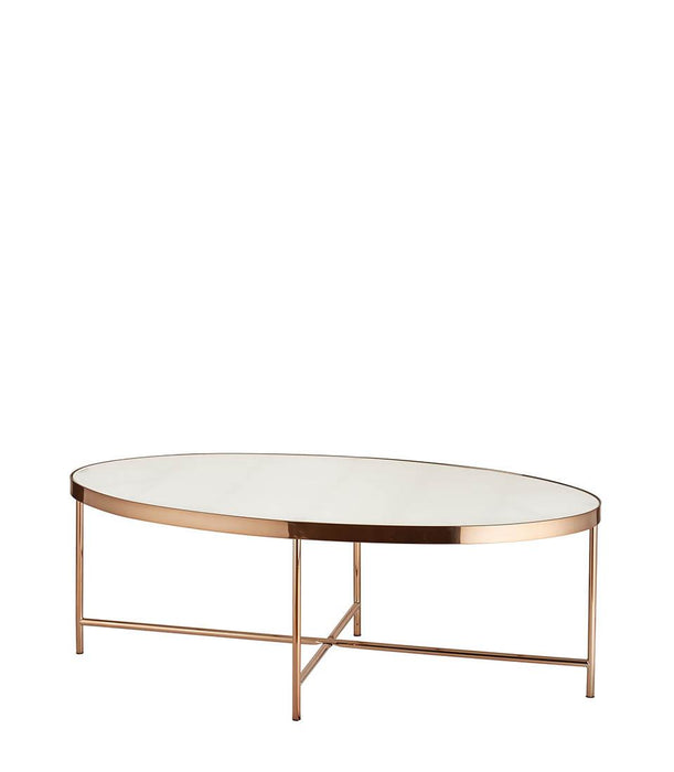 Tavolino da salotto Ovale con base in metallo dell'azienda L'Oca Nera. Un oggetto dal design raffinato in perfetto stile chic, il piano d'appoggio del tavolino è realizzato in vetro temperato.