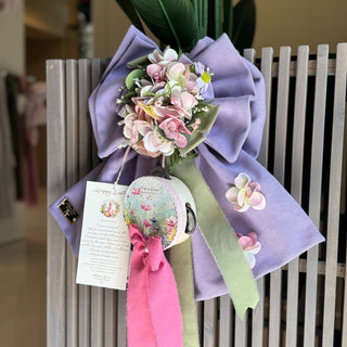 Scopri il Fiocco Primaverile Madame Fiocco Fuoriporta in Piquet con Tamburello Lilla H40, una decorazione esclusiva realizzata a mano in Italia. Questo fiocco elegante, realizzato in piquet verde di alta qualità, è l'ideale per abbellire il tuo fuoriporta o qualsiasi altro angolo della tua casa. Il suo design raffinato e la tonalità fresca e naturale portano un tocco di classe e freschezza, perfetto per accogliere la primavera con stile.