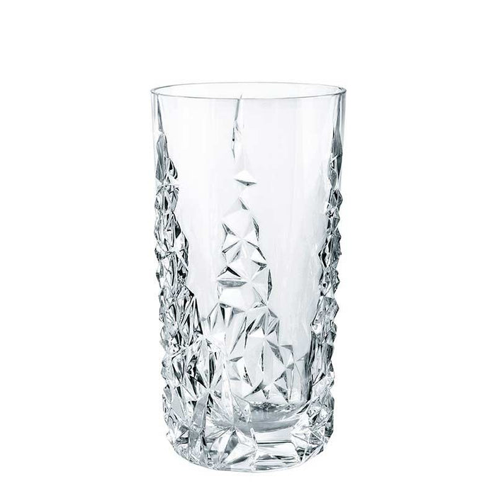 Set 4 Bicchieri Longdrink Sculpture dell’azienda Nachtmann ,sono realizzati in vetro di cristallo con un design che richiama dettagli di un diamante. Alla luce creano un gioco di brillantezza grazie al vetro cristallino. Facili da maneggiare, resistenti e lavabili in lavastoviglie.