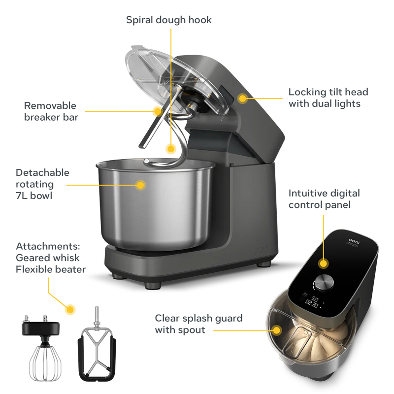 Potente, precisa e dal design professionale, la impastatrice a spirale Ooni Halo Pro 7L è la scelta ideale per chi desidera risultati da vera pizzeria anche a casa. Dotata di tecnologia a spirale ad alte prestazioni, questa impastatrice assicura una lavorazione omogenea e controllata, perfetta per impasti di pizza, pane, focacce e dolci.
