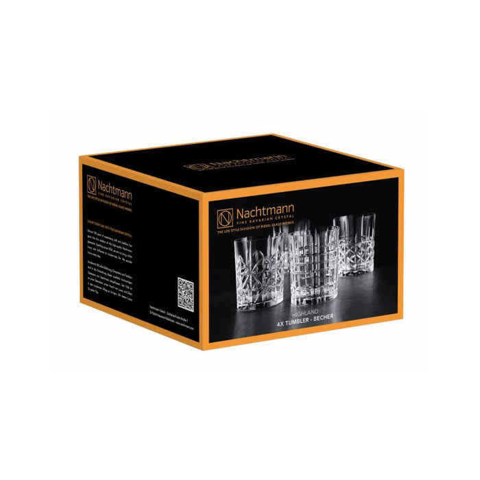 Porta un tocco di lusso in tavola. Set 4 Bicchieri Acqua Highland dell’azienda Nachtmann , realizzati in vetro di cristallo con un design moderno con forme ispirate alle turbine a reazione . Alla luce creano un gioco di brillantezza. Facili da maneggiare, resistenti e lavabili in lavastoviglie. Ideale per servire acqua ai vostri ospiti nelle occasioni più formali.