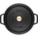 Ogni pezzo è unico ed è il risultato di un processo di fabbricazione tradizionale. La cocotte tonda color nero sarà un pezzo attraente in cucina e in sala da pranzo. Grazie al coperchio dotato di piccole semisfere la Cocotte Staub genera un flusso di ritorno dell 'acqua, con un'effetto pioggia fino a 9 volte superiore rispetto ad una casseruola tradizionale. Dopo 30 minuti di cottura grazie al peso ottimizzato del coperchio si riduce al minimo il rischio di bruciature e di evaporazione delle pietanze.