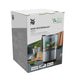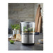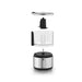 Ha una struttura in acciaio inox che lo rende resistente agli urti, una comoda impugnatura, utilizzabile con una sola mano, chiusura di sicurezza per una messa in funzione solamente a coperchio inserito, contenitore per miscelare realizzato in Tritan, senza BPA, inodore e insapore, da 300 ml.