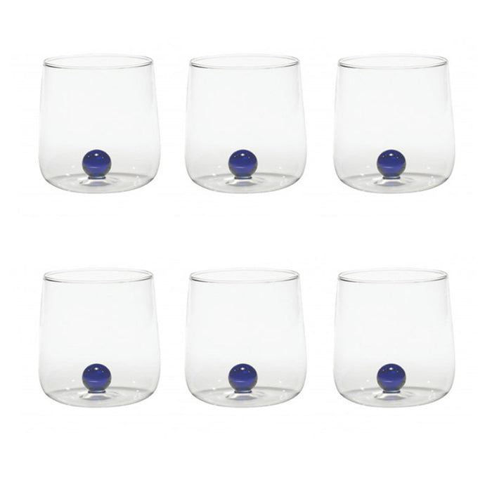 Set 6 bicchieri della collezione Bilia di Zafferano, l'impugnatura del bicchiere, grazie alla forma angolata, risulta confortevole e antiscivolo.